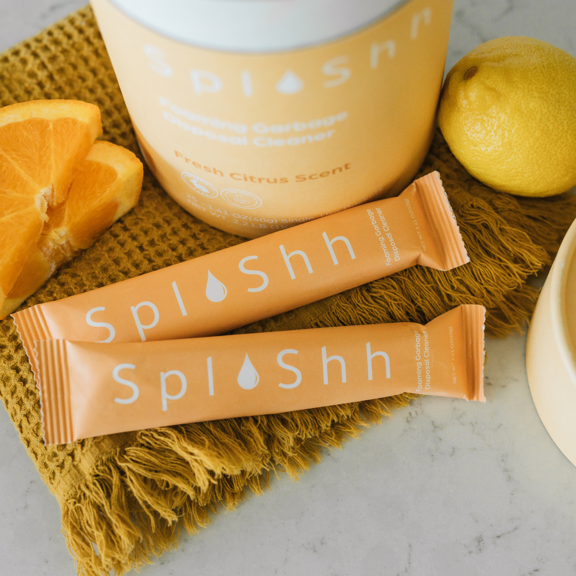Each container includes 25 pre-measured packets for effortless use — just two packets a month keeps your disposal clean, fresh, and odor-free all year long. Formulated with citric acid, sodium bicarbonate, and plant-based surfactants, SplaShh is bleach-free, septic-safe, and compatible with mostly all garbage disposal models.